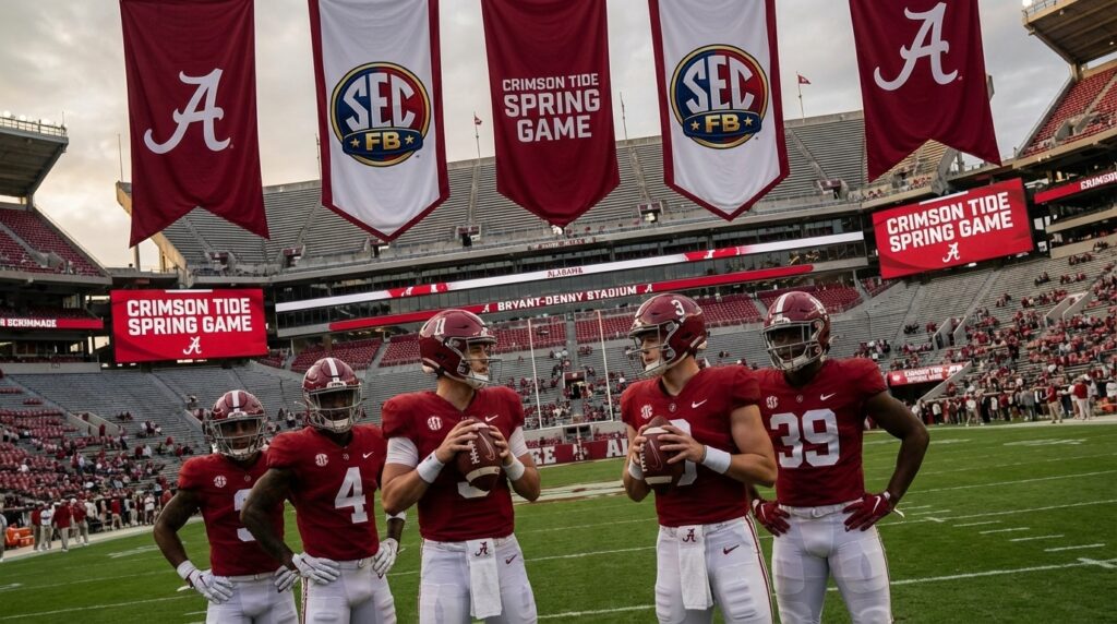 A-Day is more than a scrimmage. It is Alabama’s annual spring showcase at Bryant Denny Stadium. Fans get a first live look at new faces. Coaches get live reps to evaluate depth. Because the Tide lost several experienced starters, A-Day takes on extra weight this spring.