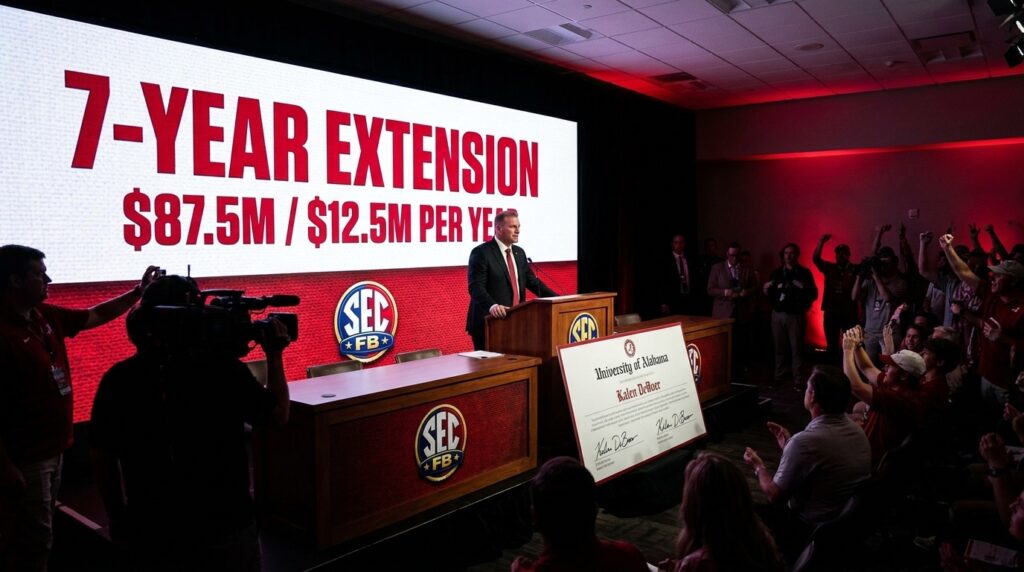 This article unpacks the headlines, fan threads, and pundit commentary. Therefore, it provides context on the contract terms, financials, and what the extension means for program stability. Along the way, readers will see how the deal affects recruiting, assistant retention, and Alabama’s status in the SEC. You will find quotes from fans and columns from national outlets. We also highlight key figures and what their reactions mean for Alabama’s future. As a result, expect both celebration and scrutiny in the days ahead.