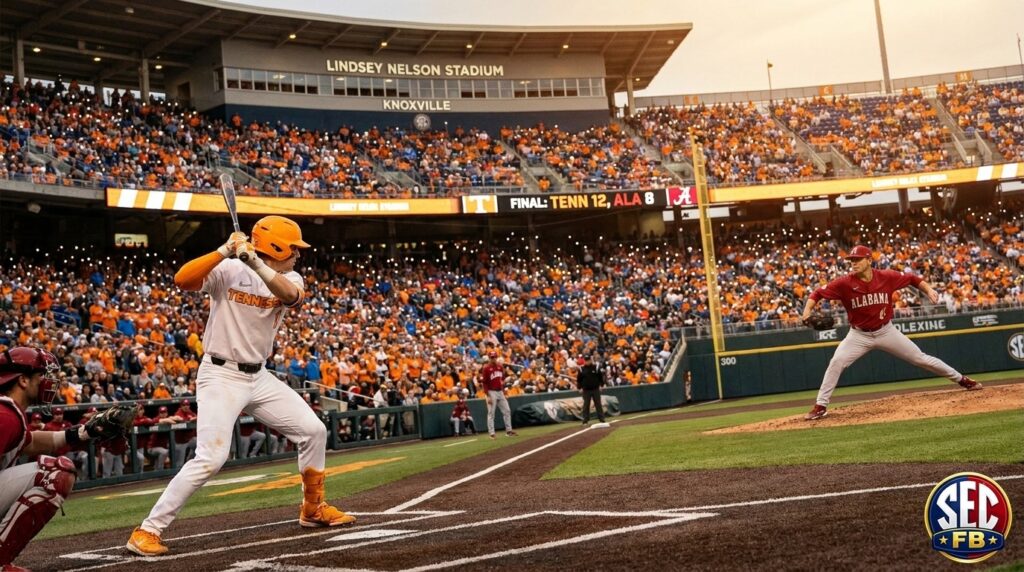 Game one in Knoxville delivered an 12 to 8 finish in favor of Alabama, and the opener set the series tone. The Crimson Tide grabbed a one to zero series lead. Fans saw big innings, late rallies, and heavy bullpen usage.